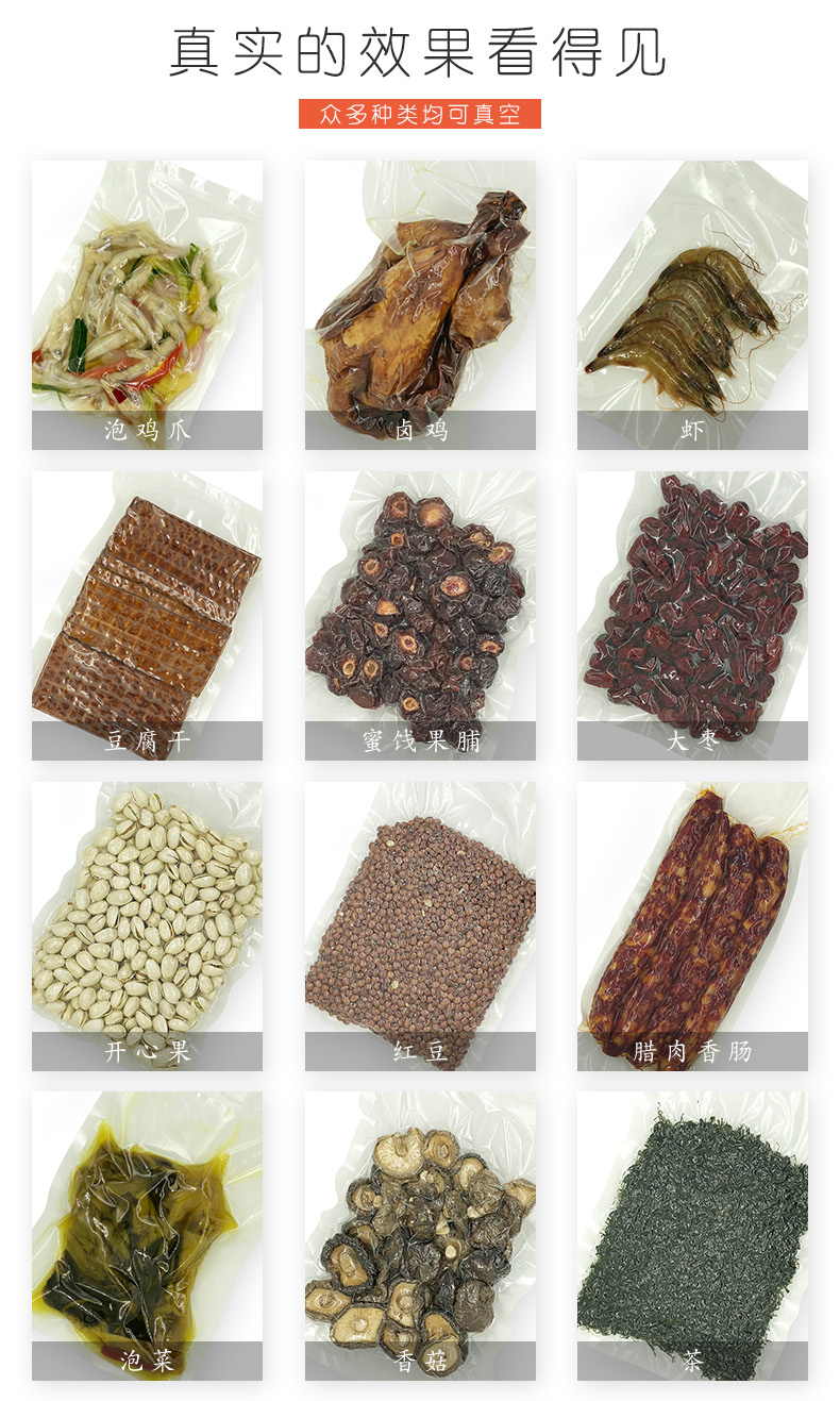 全自動真空包裝機,減少人力,提高產(chǎn)能,適合中、大型工廠使用。采用了微電腦控制技術(shù),工作時間更加準確,抗干擾能力更強,性能更加穩(wěn)定。機器只須按下真空室蓋即可自動按設(shè)定的程序完成抽真空、封口、印字、冷卻和排氣的全過程。經(jīng)過包裝后的產(chǎn)品可防止氧化、霉變、受潮,可保質(zhì)和保鮮,延長產(chǎn)品的儲存期。