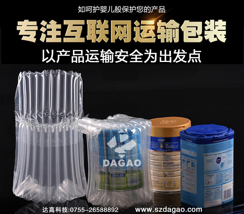 規(guī)格分類(lèi):奶粉氣柱袋、筆記本氣柱袋、紅酒氣柱袋、罐頭氣柱袋、蜂蜜氣柱袋、氣柱卷材